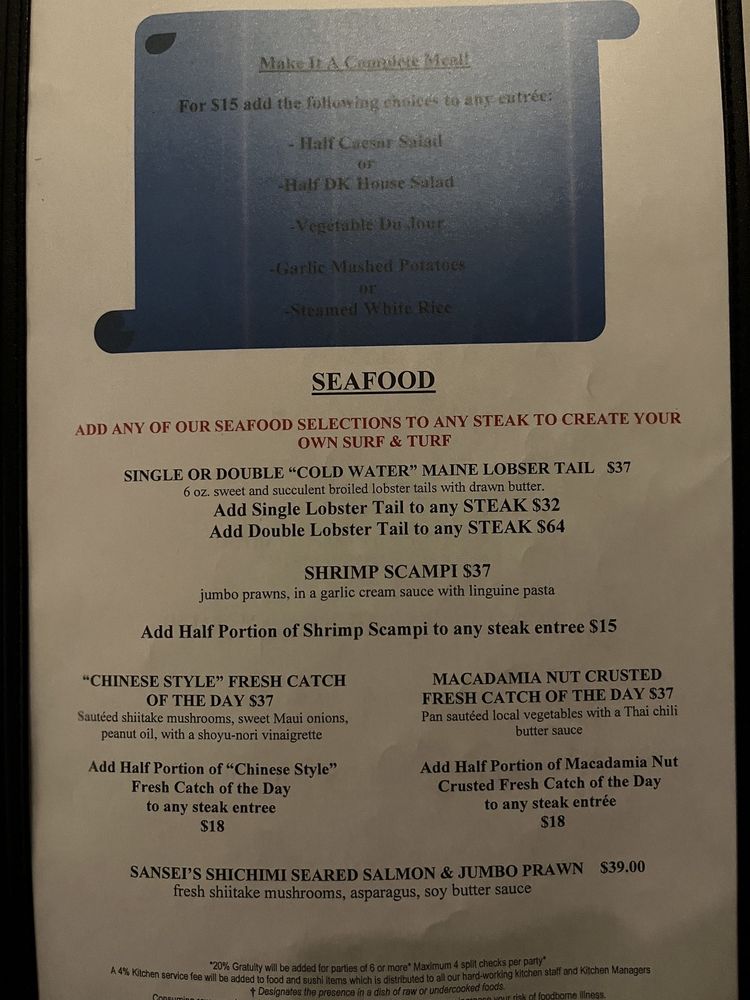 Welcome to d.k Steak House, a culinary gem nestled in Honolulu’s bustling Kalākaua Avenue. This unique eatery elegantly combines premium steak with an impressive array of seafood, offering diners a memorable experience.